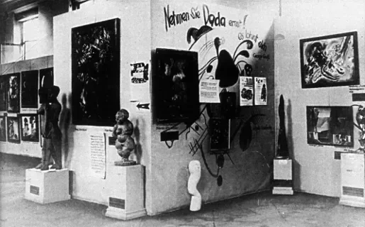 Interior view of the Degenerate Art Exhibition, Munich 1937. Room 3 “Take Dada seriously!”